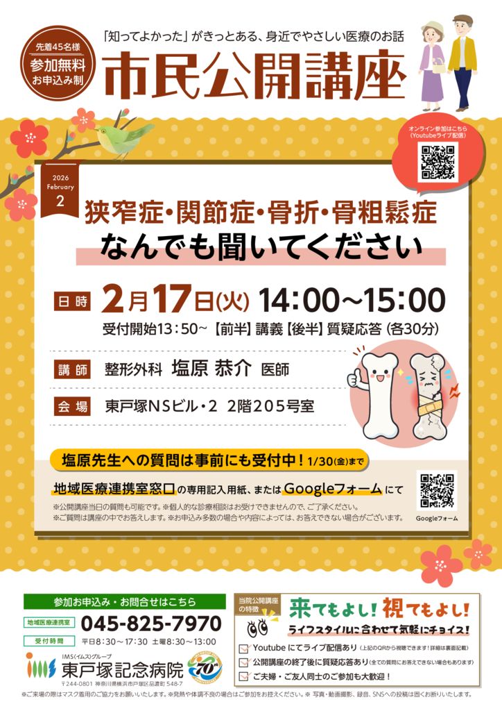 - 2025.9.17 10月30日(木)市民公開講座を開催します