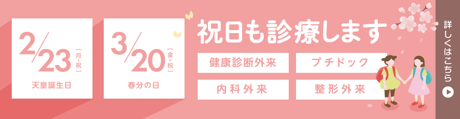 - 2025.12.13 2026年1月12日(成人の日)2月11日(建国記念の日)祝日診療のご案内