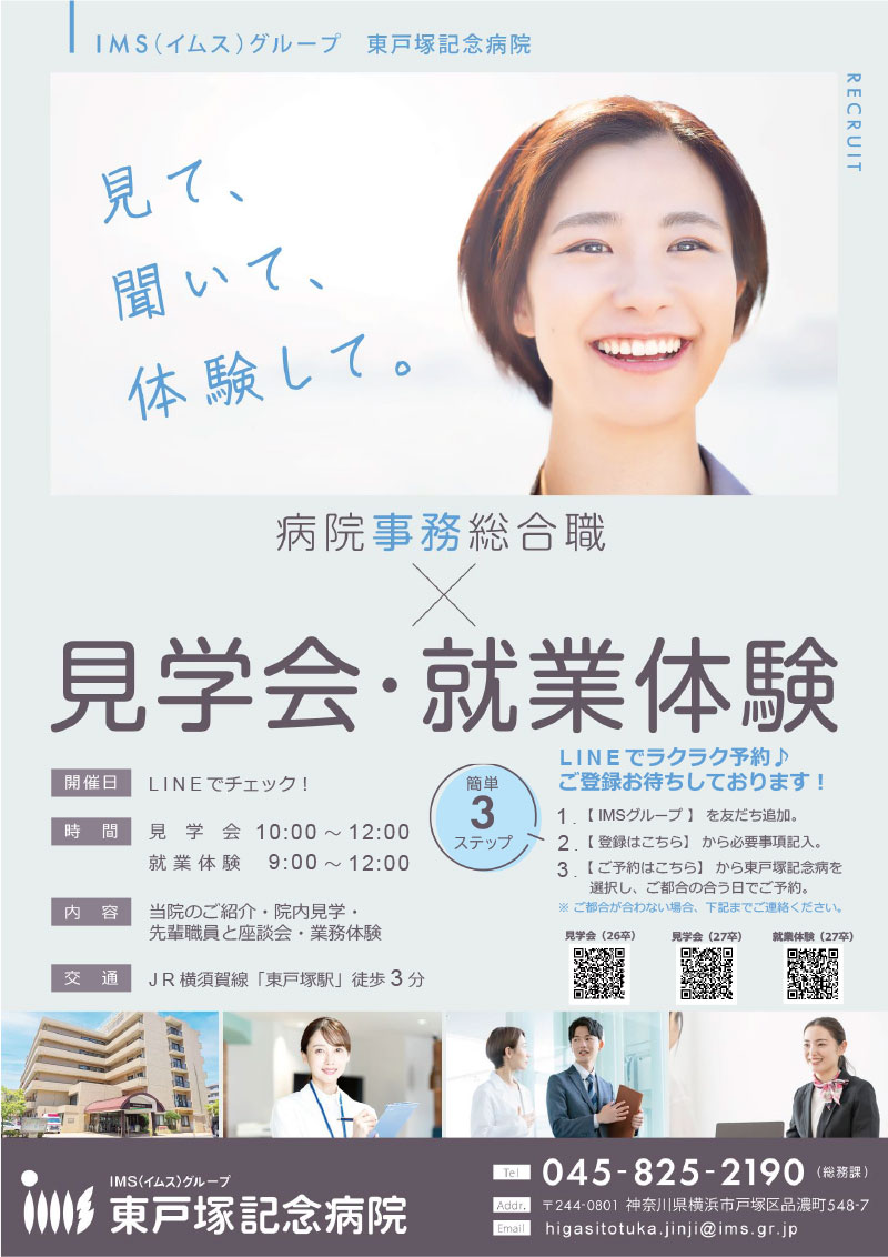 IMSグループ公式LINEから登録の上、ご予約お待ちしておりますぜひ東戸塚記念病院にお越しください。